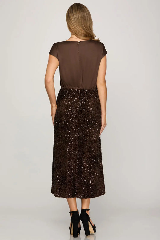Drop Sleeve Sequin Midi Dress