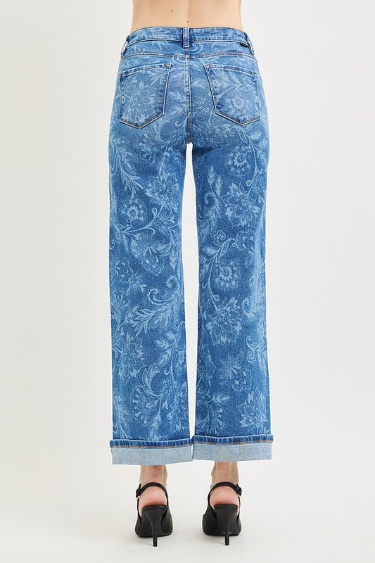 Risen Mid Rise Ankle Straight Print Details Jeans