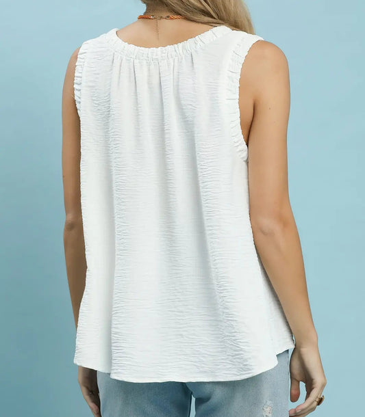 Solid Ruffle Neck Sleeveless Top