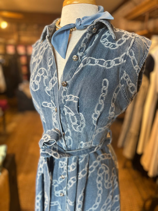 Printed Denim Midi Dress