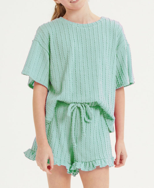Boys Football Green Stripe Knit Long Sleeve Embroidered Henley Tee