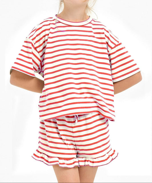 Boys Heather Oatmeal & Rust Stripe Knit Short Sleeve Henley Tee