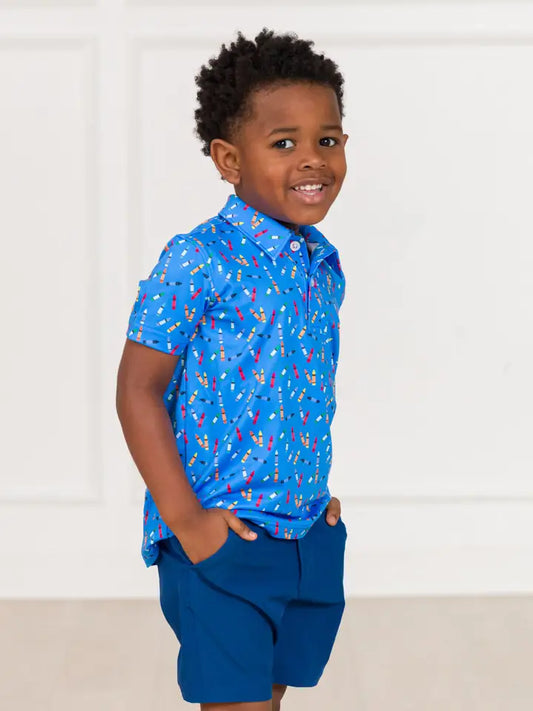 Boys Tiny Candy Canes Knit Short Sleeve Performance Polo