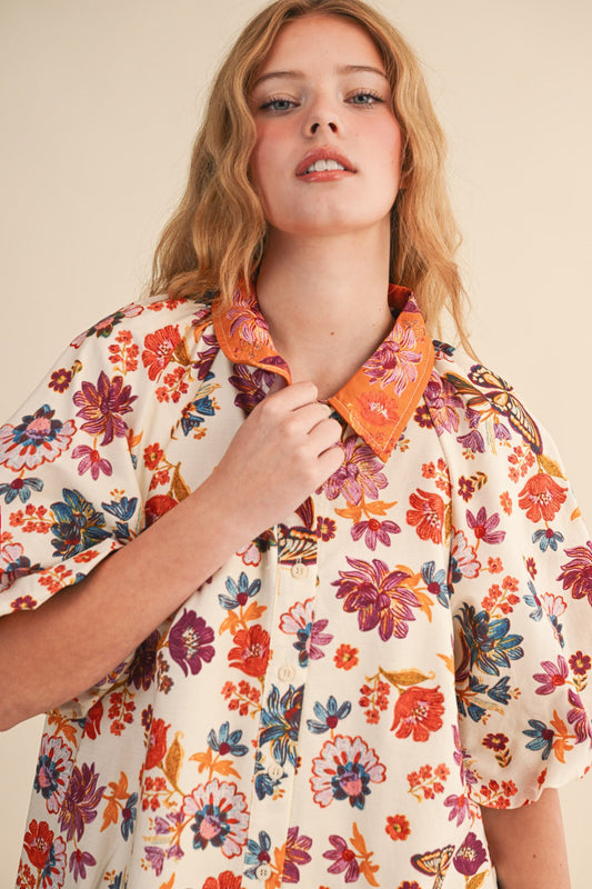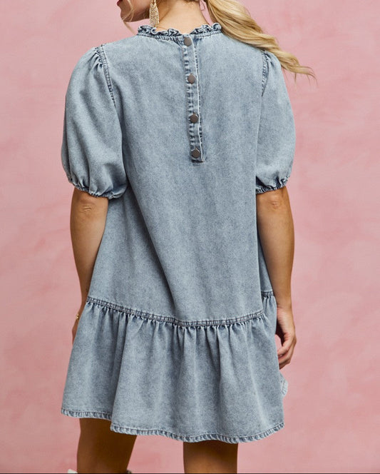 Vintage Collared Leopard Print Long-Sleeve Loose Denim Dress