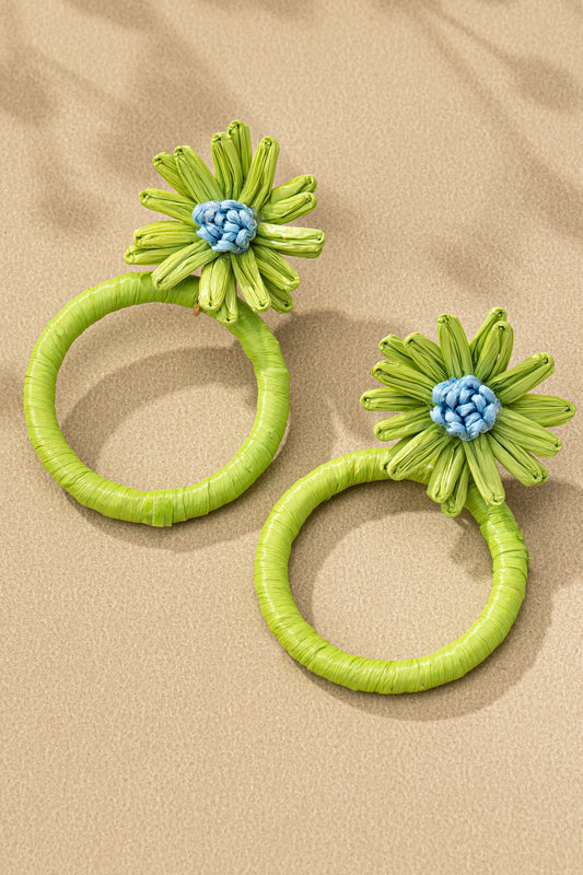 Raffia Straw Flower Hoop Earrings