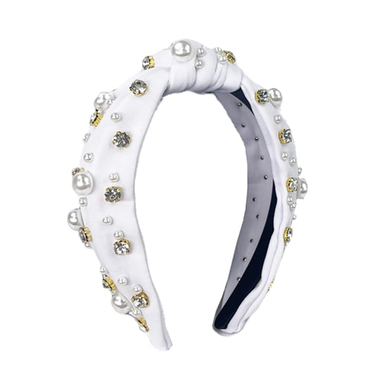 Top Knot Headband With Rhinestones & Pearls