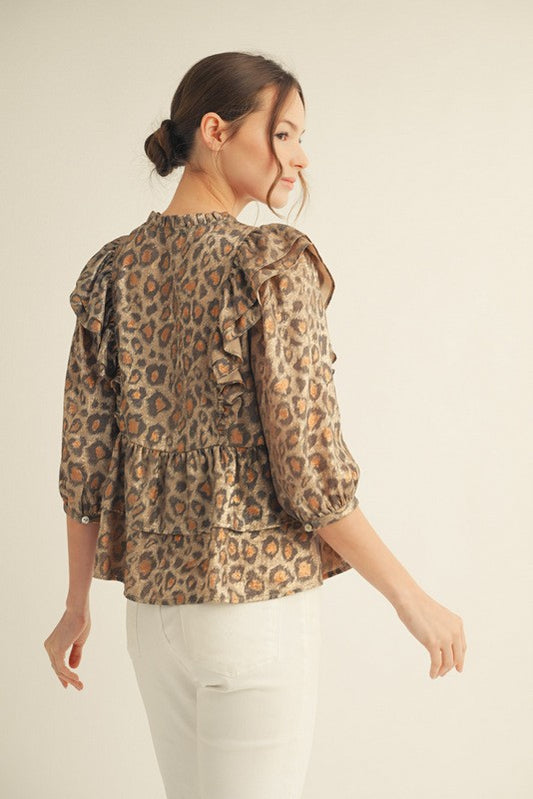 Ruffled Metallic Leopard Top