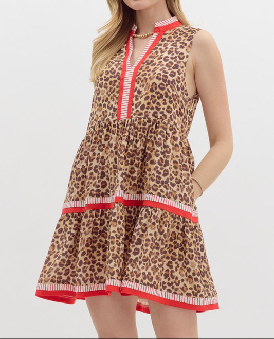 Leopard and Red Mini Dress