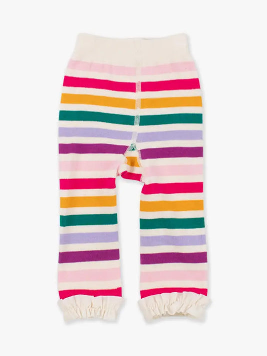 Girls Colorful Rainbow Stripe Patterned Footless Ruffle Tights