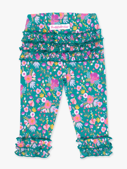 Toddler Girls Emerald Floral Classic Ruffle Leggings with Signature Rear Ruffles