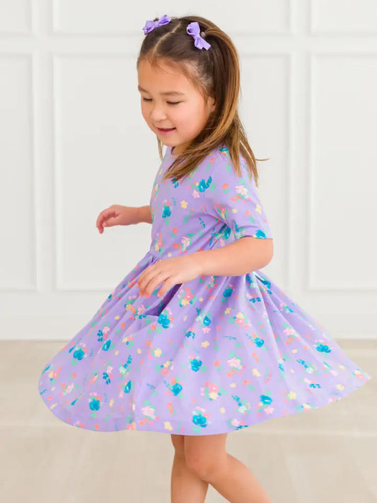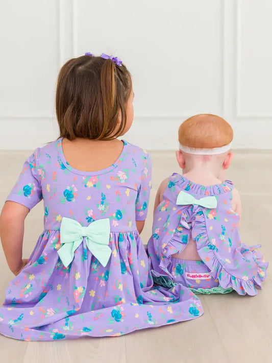 Baby Girls Lavender Valley Knit Long Sleeve Flutter Bubble Romper