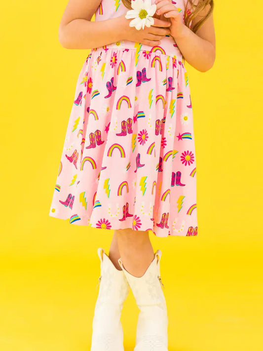 Girls Cowgirl Cutie Knit Tie Shoulder Twirl Dress