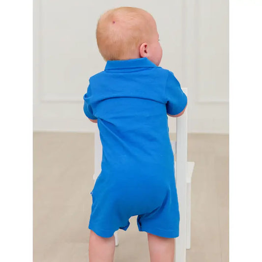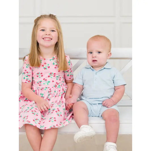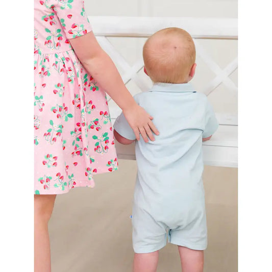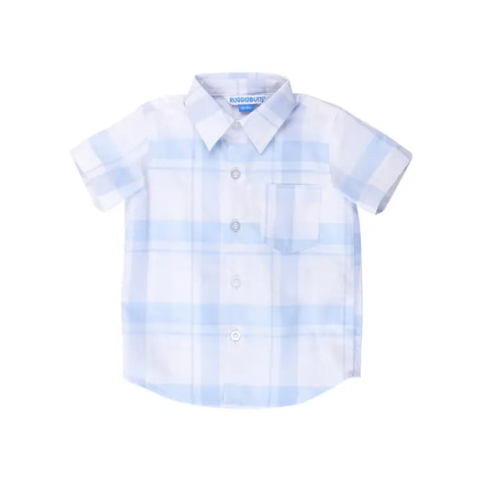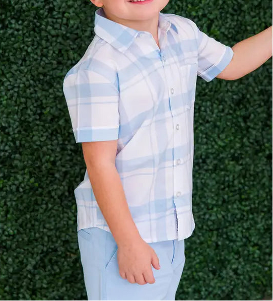 Boys Classic Periwinkle Blue Gingham Knit Short Sleeve Performance Polo