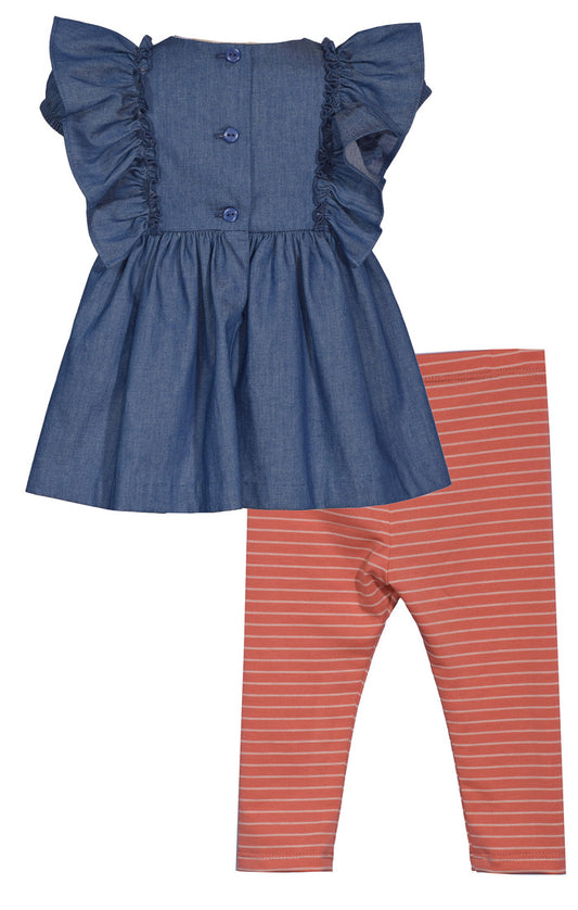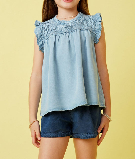 Girls Ruffle Detailed Smocked Denim Tencel Tank
