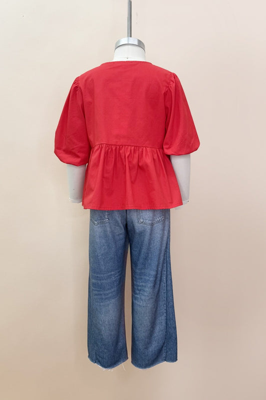 Kids Solid Cotton Poplin Front Tie Ribbon Blouse