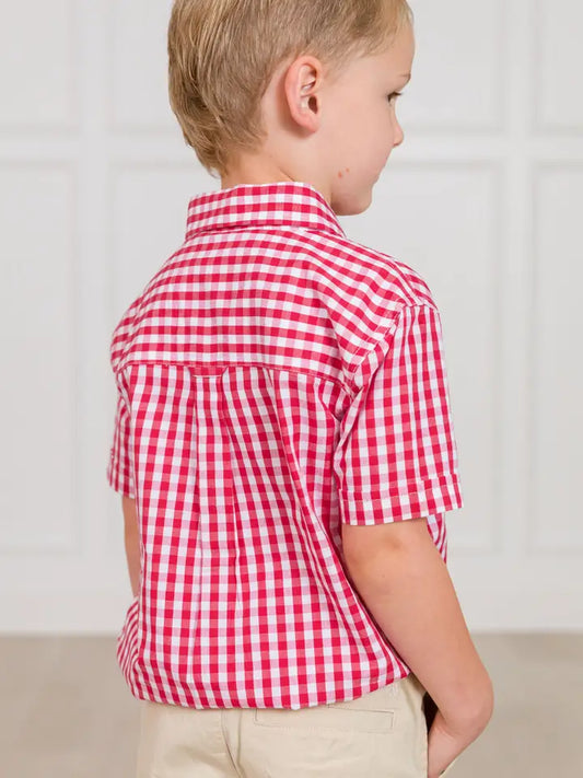 Boys Classic Red Gingham Short Sleeve Button Down Shirt