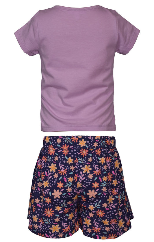 Girls Purple Garden Short Sleeve Knit Twirl Dress