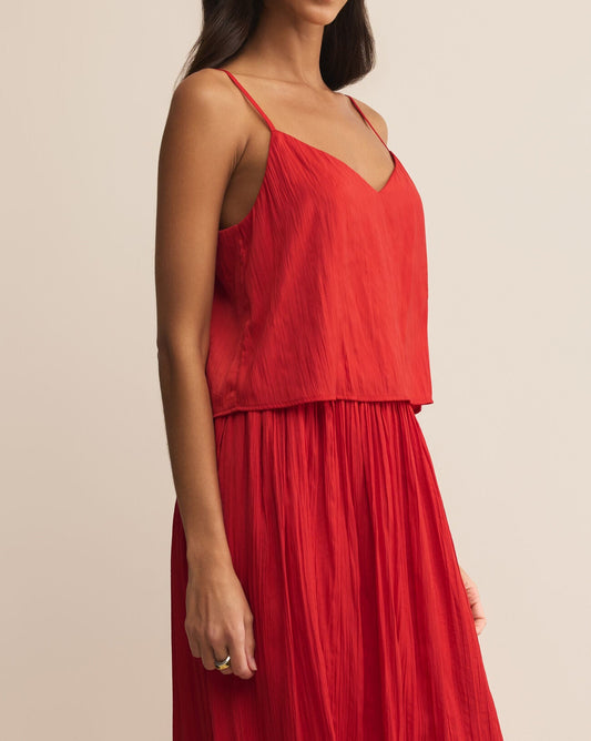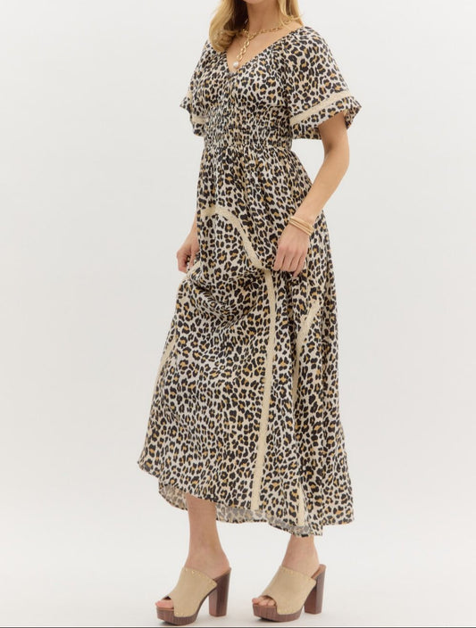 Smocked Ruffle Sleeve Eyelet Hem Midi Dress