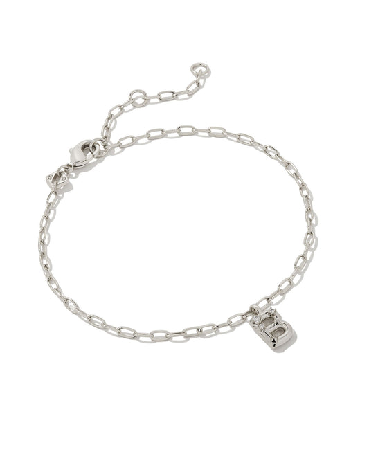 PULSERA DE CADENA DELICADA CON LETRAS DE CRISTAL PLATA BLANCA CZ