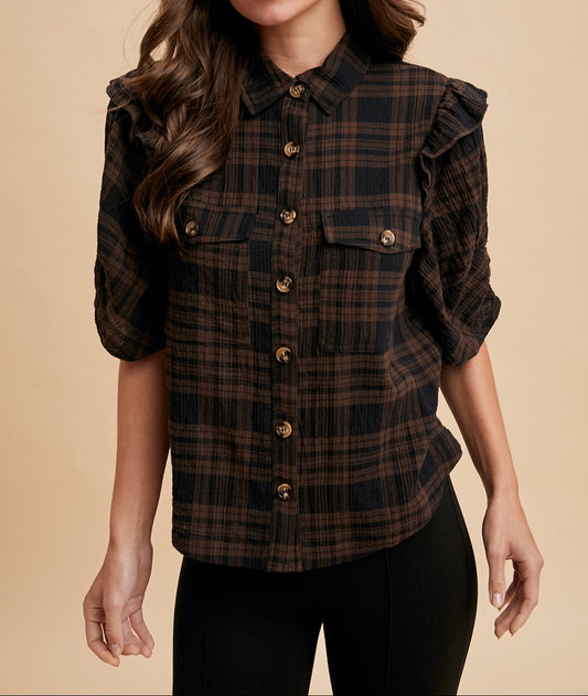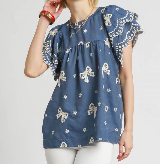 Babydoll Denim Top With Puff Sleeves