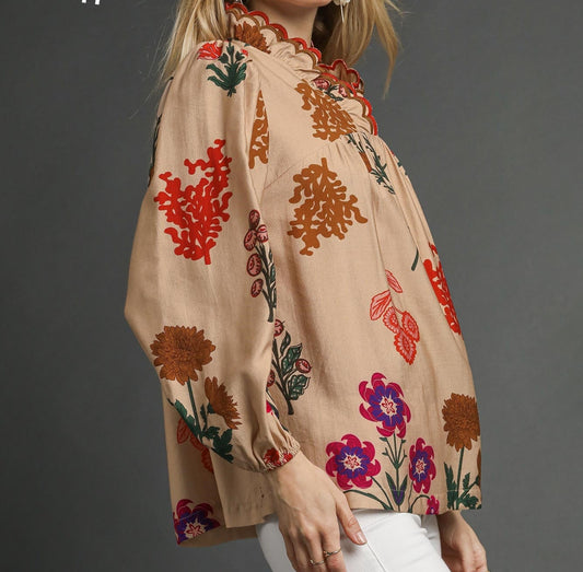 Mixed Pattern Long Sleeve Top