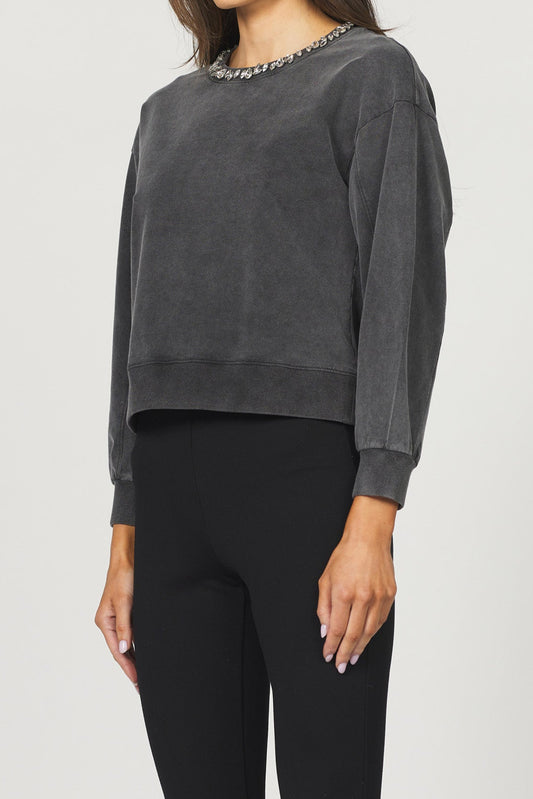 Sheer Rhinestone Mesh High Neck Top