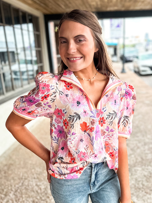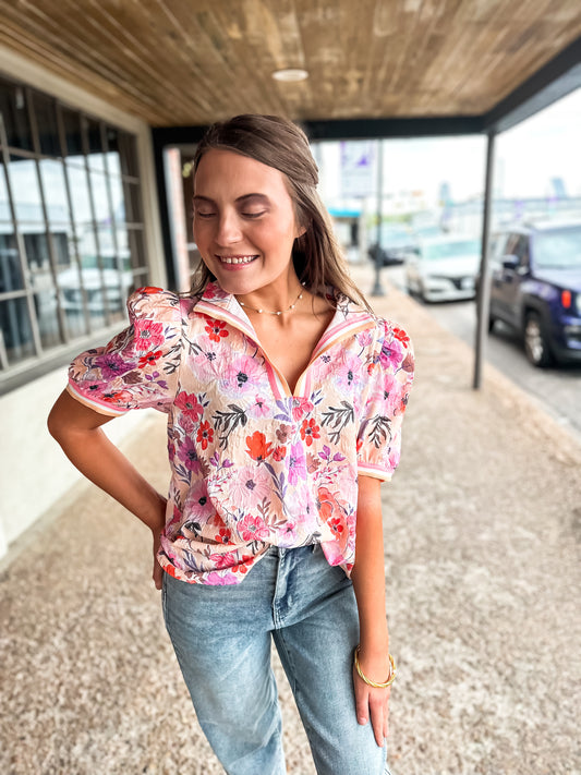 Floral Denim Terry Mix And Match Top