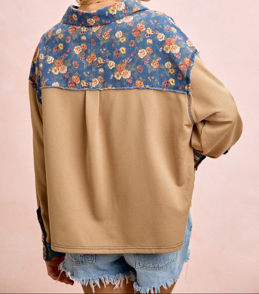 Floral Denim Terry Mix And Match Top