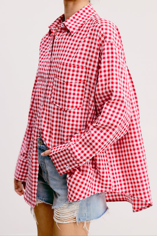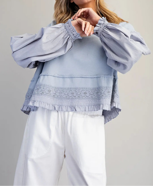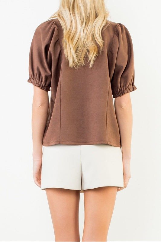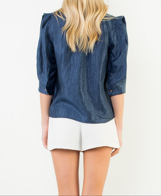 Textured Gauze Button Down Puff Sleeves Blouse Top