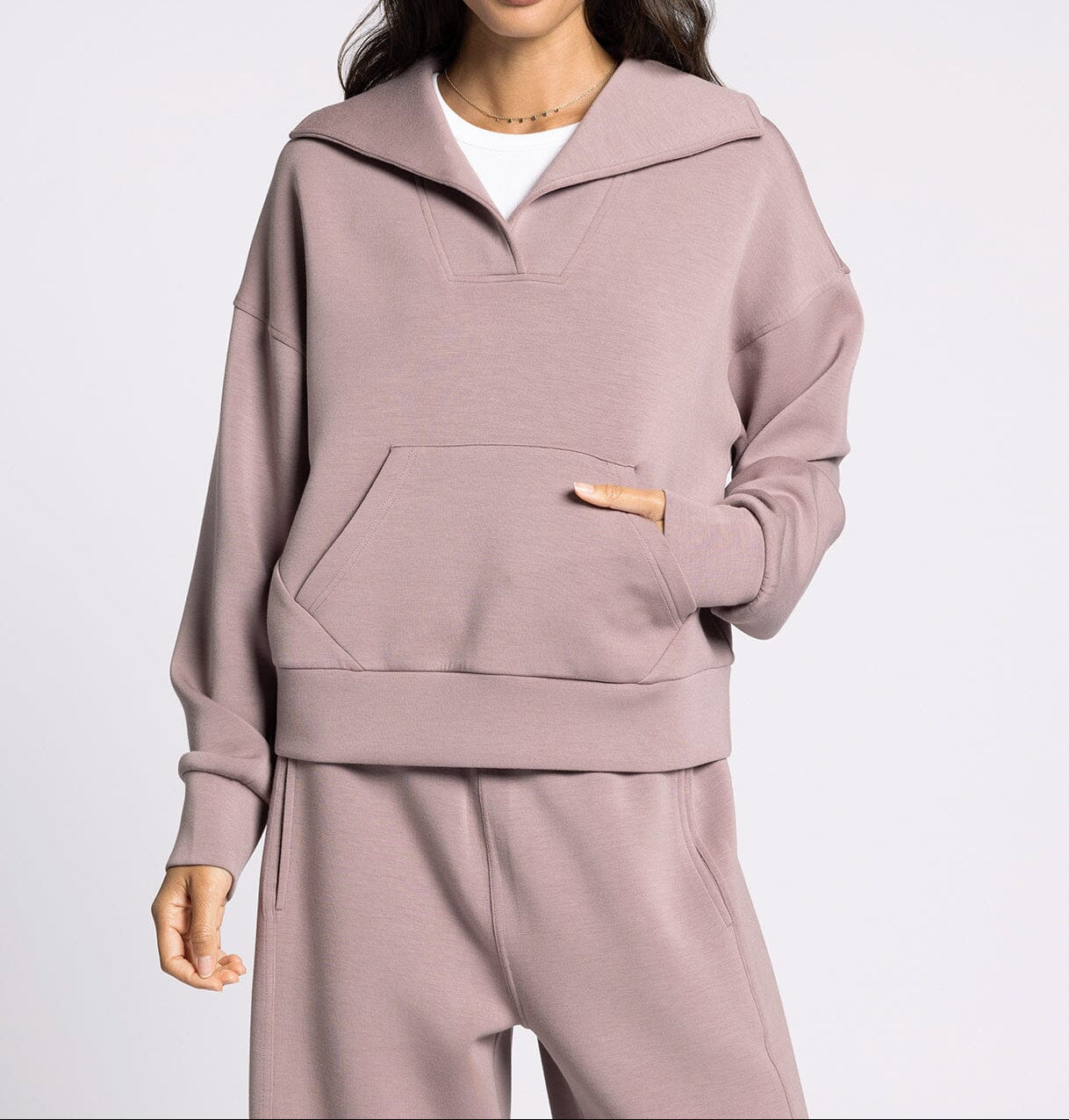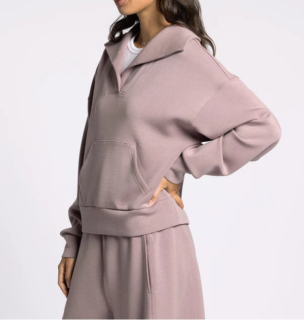 The Alana Top is your new go-to for effortless style. This relaxed wide-collar piece features trendy drop shoulders that give off that coveted laid-back vibe, while a handy pouch pocket keeps your essentials within reach. Perfect for dressing up or down, it's the versatile staple that makes getting dressed actually fun.