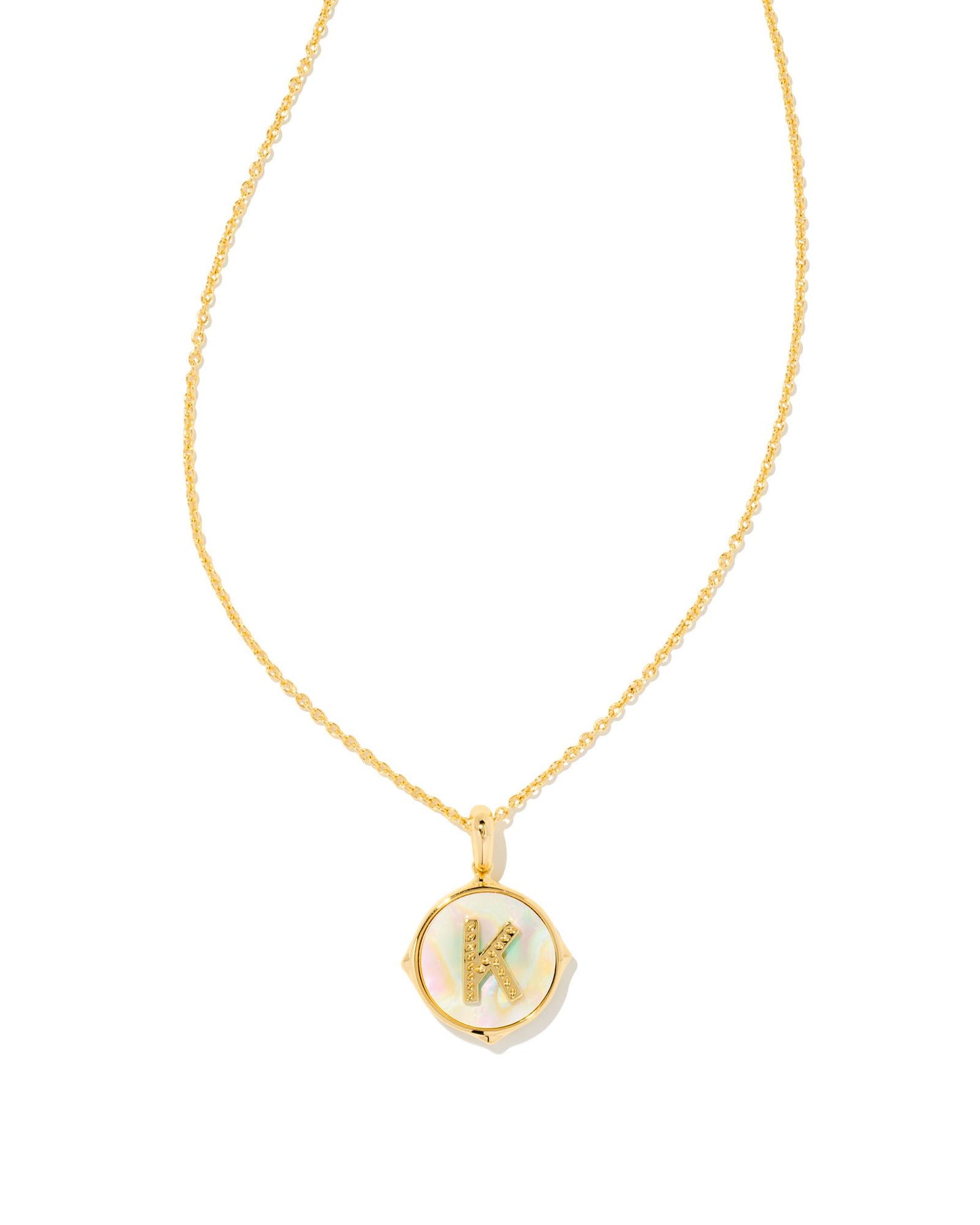 The Letter Disc Pendant Necklace in Iridescent Abalone is a must-have layer. Featuring a reversible pendant, this versatile necklace is designed to personalize your look and double your styling options.